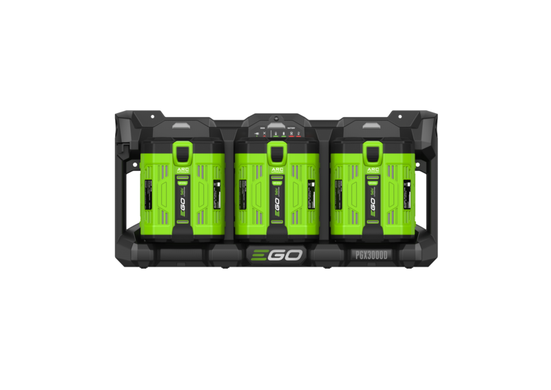 Konzipiert für den Anschluss an das EGO Pro X 1600-W-Ladegerät. Geeignet für bis zu drei EGO 56V-ARC-Lithium™ Akkus.