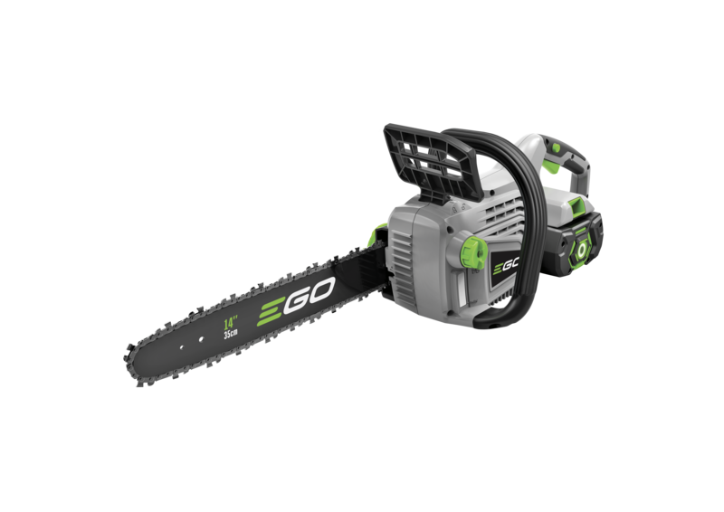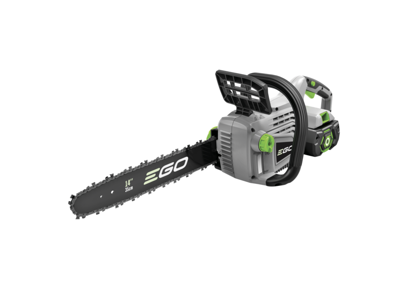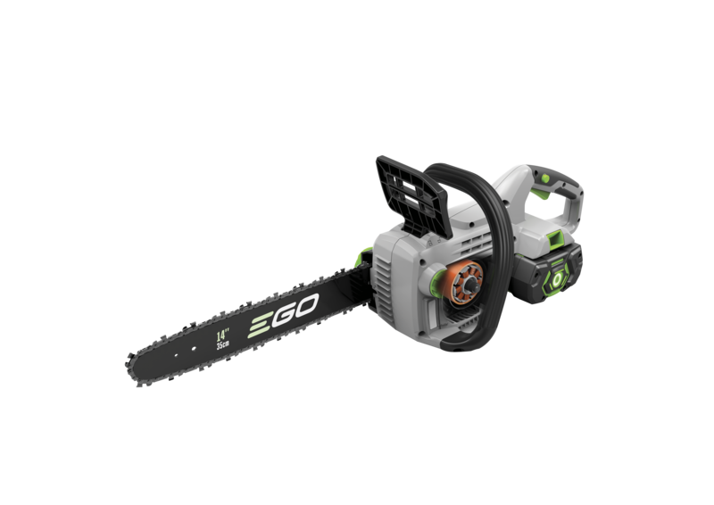 Klein aber oho! Die Akku-Kettensäge CS1400E von EGO Power+ ist eines der leistungsstärksten schnurlosen Geräte seiner Art. Mit einer Führungsschiene von 35 cm und einer Kettengeschwindigkeit von 13,5 m/s können Sie mühelos Äste und mittelgroße Stämme sägen. Die Kettenbremse gewährleistet sicheres Arbeiten. Zu diesem Kit gehören ebenfalls ein 2,5-AH-Akku und ein Standardladegerät.